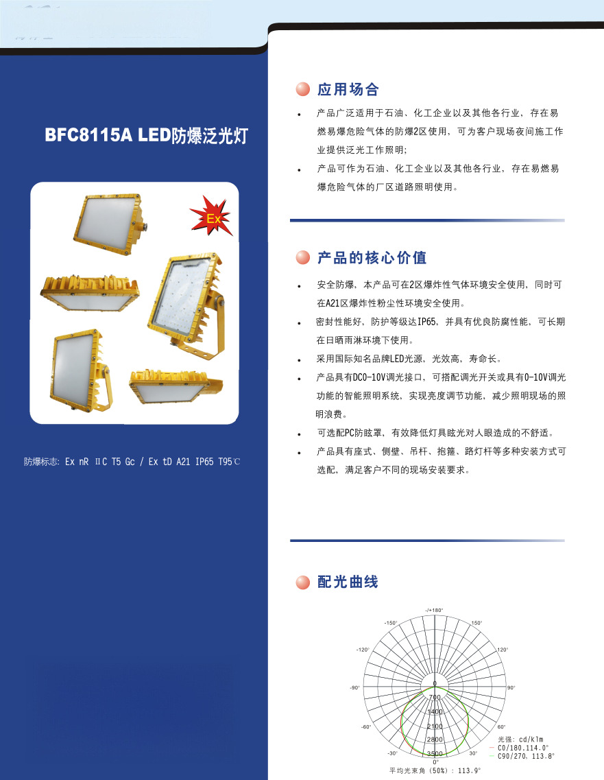 适用于石油、化工等行业易燃易爆场所的泵房、装置区域、油站、气站、联合站等室内外泛光照明。
